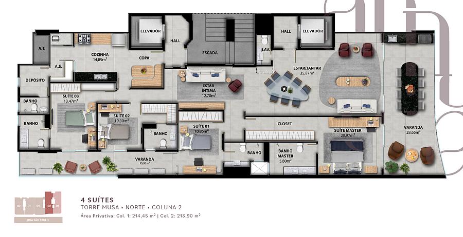 ✔ Unidades exclusivas: Apenas 1 ou 2 apartamentos por andar