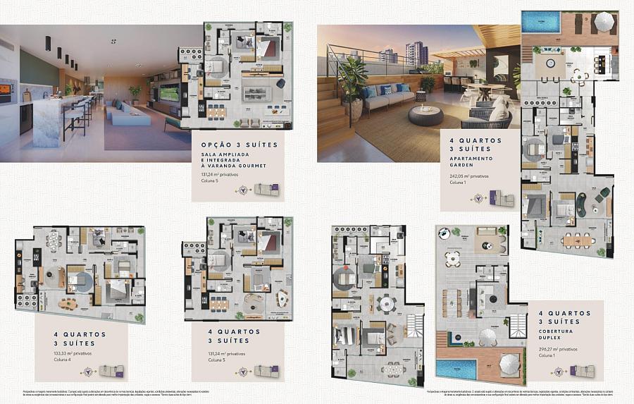 • 4 Quartos com 3 Suítes | 131,24m² a 149,62m²