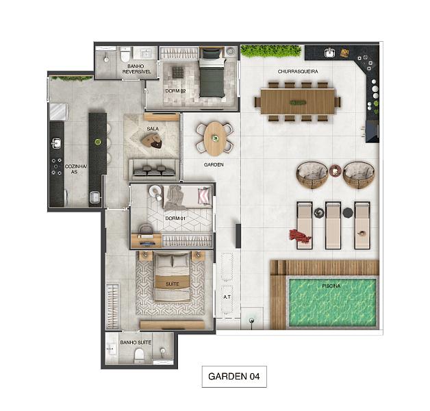 Conforto e sofisticação: apartamentos de 2 ou 3 quartos com suíte, projetados para oferecer eficiência e harmonia em cada detalhe.