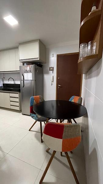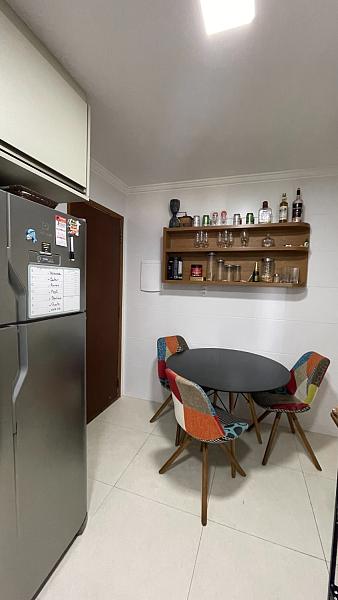 Com 108m², o imóvel possui 2 quartos (1 suíte), escritório adaptado e despensa no lugar do terceiro banheiro. Ambientes amplos, claros e ventilados, com sol da manhã e móveis planejados de alto padrão.