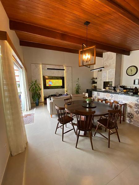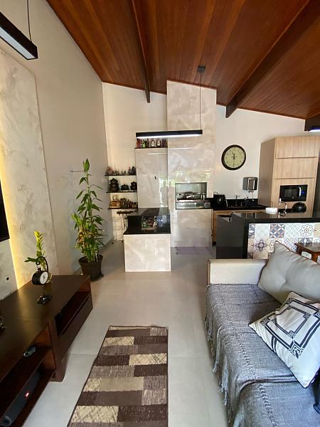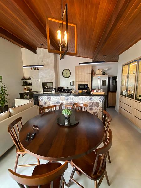 O imóvel oferece ainda uma cozinha gourmet equipada com fogão a lenha — perfeita para momentos especiais em família ou entre amigos. A varanda frontal recebe o sol da tarde, enquanto a garagem, com vaga descoberta, fica posicionada para aproveitar o sol da manhã. Os ambientes externos são ideais para quem gosta de aproveitar a luz natural e o ar puro.