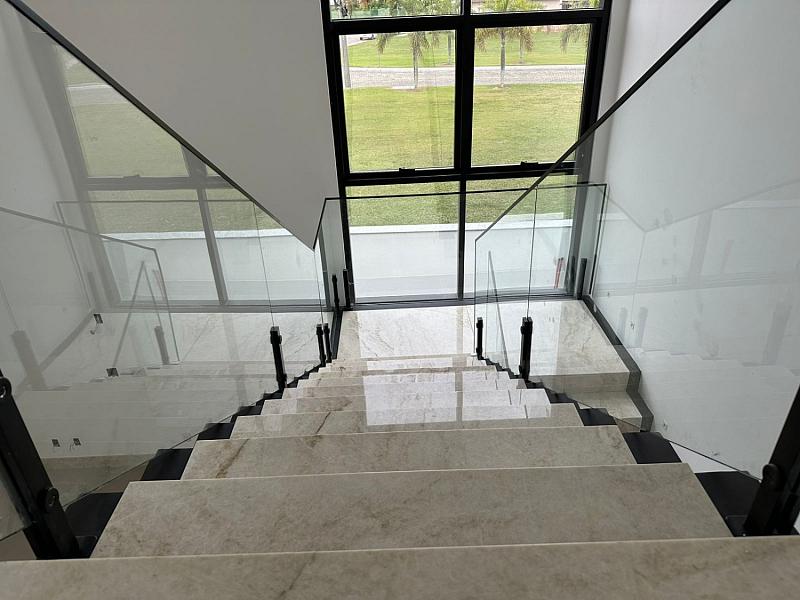 Esta moderna casa de luxo, recém-construída em agosto de 2024, está localizada na exclusiva Península do Residencial 2 do Alphaville Jacuhy, em Serra/ES. Com 439m² de área construída em um terreno de 439m², o projeto arquitetônico se destaca pelo pé-direito elevado, linhas contemporâneas e alto padrão de acabamento. A casa conta com 4 suítes, sendo uma no térreo — ideal para escritório ou home office — e uma suíte master com claraboia em vidro no banheiro, que traz iluminação natural e um toque de sofisticação.