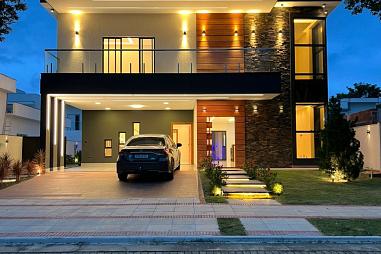 Com 240m² de área construída em um terreno de 420m², a casa conta com 3 quartos, sendo 2 suítes (uma delas master com closet) e mais um banheiro social. Todos os quartos são climatizados, oferecendo o máximo de conforto em todas as estações do ano.