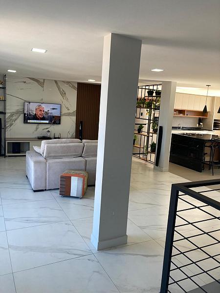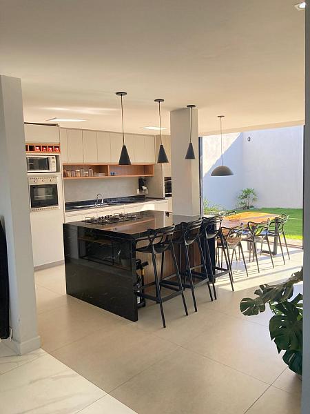 A área social é um verdadeiro destaque: um pavimento com 100m² em conceito aberto, decoração industrial e uma ampla cozinha gourmet com marcenaria planejada e churrasqueira, integrada a uma ilha funcional que permite acompanhar o ambiente inteiro, ideal para quem gosta de receber amigos e família com praticidade e estilo.